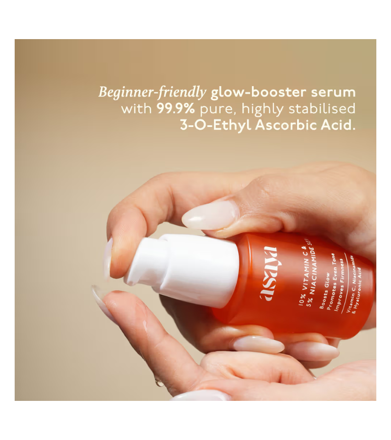 GET DIRECTIONAsaya's 10% Vitamin C Serum harnesses stabilized ascorbic acid to brighten dull complexion and neutralize environmental damage. The potent antioxidant works synergistically with 5% niacinamide to minimize pore appearance, strengthen skin resilience, and reduce redness. This dual-action formula addresses hyperpigmentation, loss of radiance, and uneven texture while supporting collagen synthesis for firmer skin. Ideal for those seeking visible luminosity and long-term skin health, this serum delivers professional-grade results suitable for most skin types. Use mornings for optimal antioxidant protection.