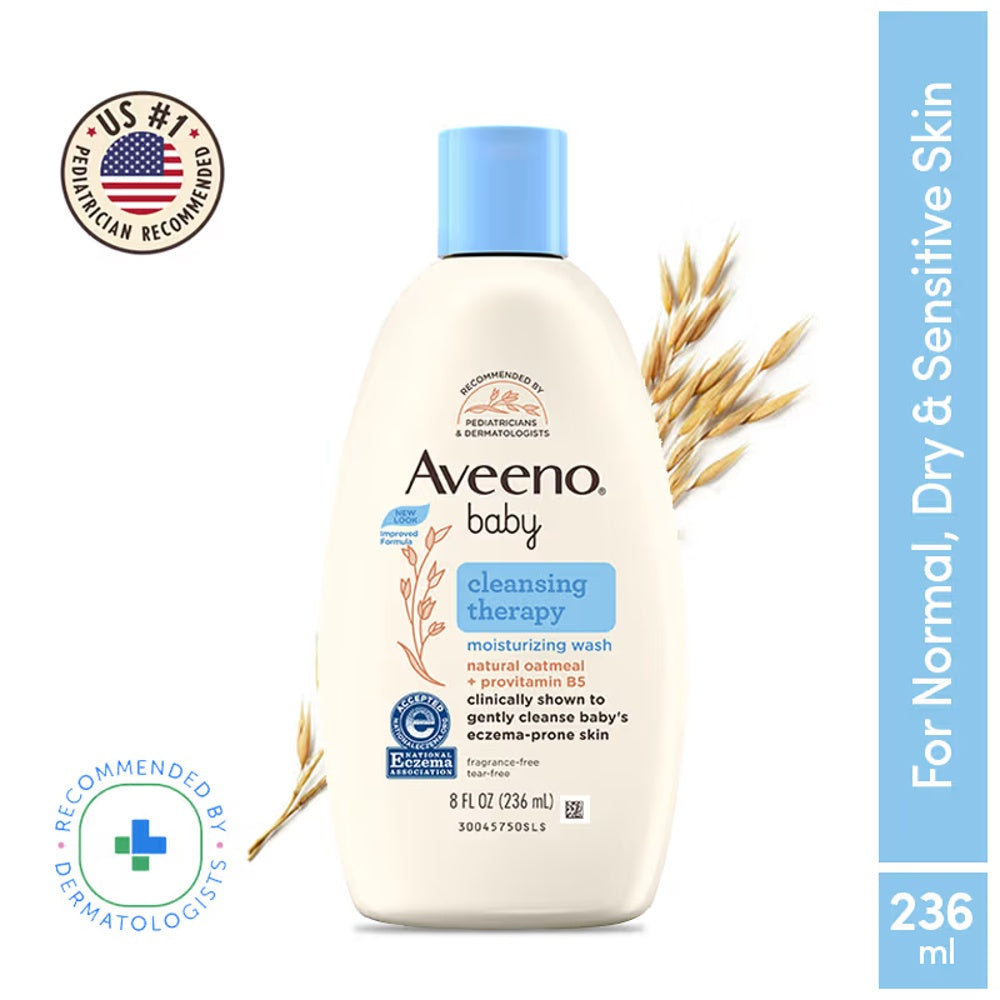 Aveeno Baby Cleansing Therapy Moisturizing Wash (236ml) is a gentle, soap-free wash designed to cleanse and soothe your baby's delicate skin. Formulated with natural oat extract, it helps maintain moisture while providing effective yet mild cleansing. This hypoallergenic formula supports the skin’s natural barrier, making it ideal for daily use on sensitive skin prone to dryness. With its expert blend, it keeps your baby’s skin soft, hydrated, and comfortable after every bath.