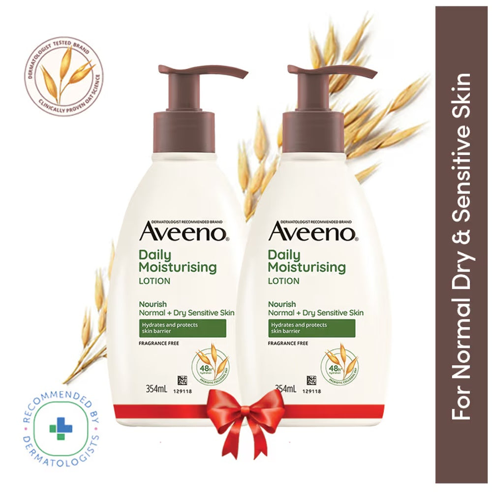 Aveeno Daily Moisturizing Lotion Pack of 2 offers gentle, effective hydration suitable for normal, dry, and sensitive skin. Formulated with natural oatmeal, it soothes irritation while maintaining the skin's moisture barrier throughout the day. Ideal for daily use, this lotion provides lasting softness and helps protect skin against dryness without clogging pores. The convenient two-pack ensures you have reliable skincare coverage at home or on the go.