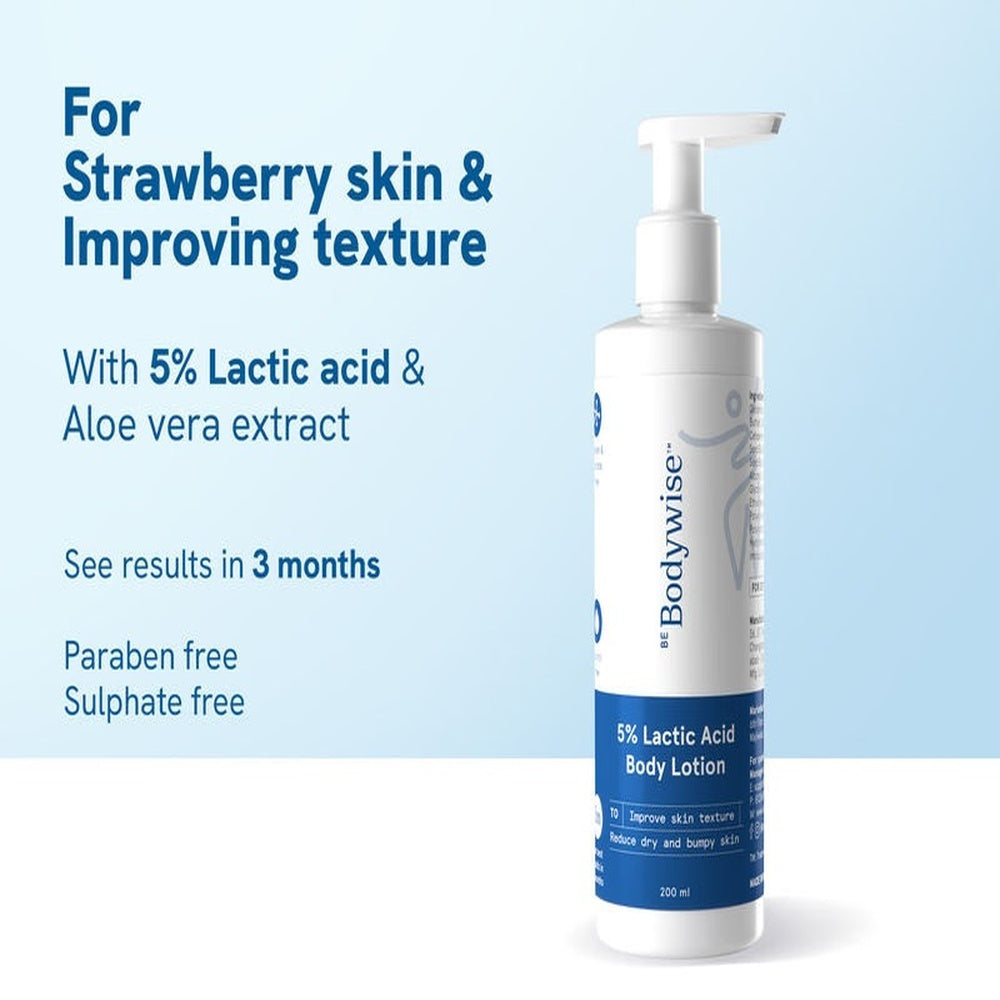Be Bodywise 5% Lactic Acid Body Lotion (200ml) gently exfoliates and hydrates your skin with a precise 5% concentration of lactic acid. This formulation helps to smooth rough texture, improve skin tone, and enhance moisture retention without irritation. Suitable for regular use, it promotes healthier, renewed skin by supporting natural cell turnover. Ideal for those seeking effective yet gentle exfoliation in their daily body care routine.
