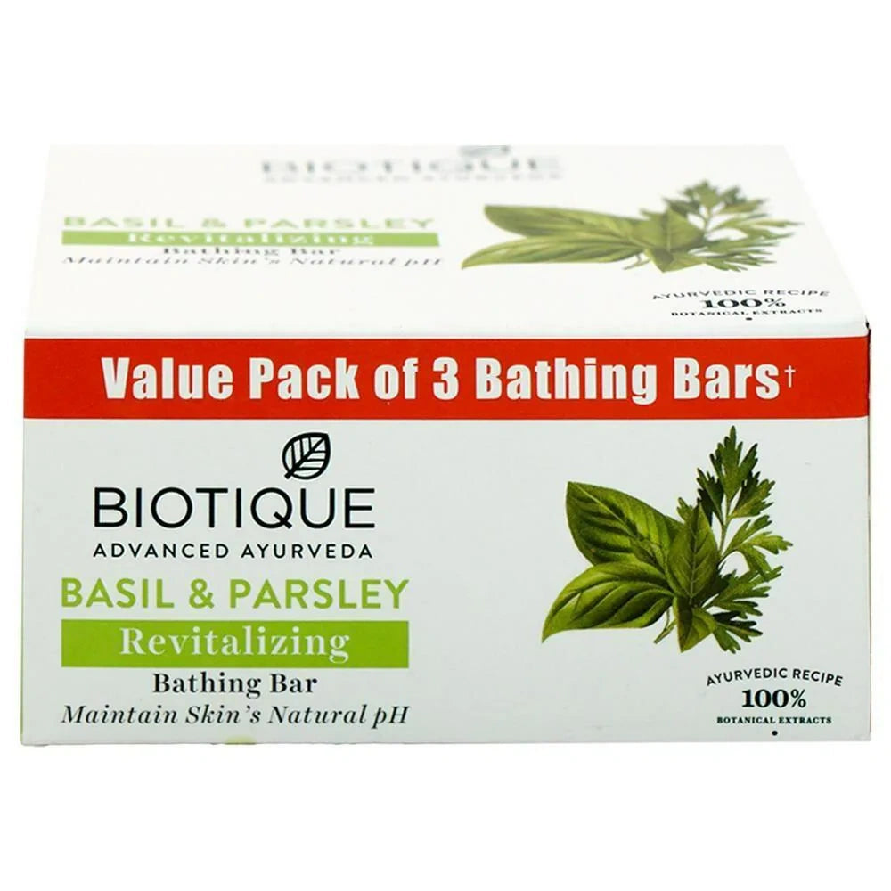 Biotique Basil & Parsley Soap (Pack of 3) offers a natural cleansing solution enriched with the antiseptic properties of basil and the skin-refreshing benefits of parsley. This trio pack gently removes impurities while maintaining skin’s natural moisture balance, making it suitable for daily use. Ideal for those seeking a herbal alternative to conventional soaps, it helps soothe and revitalize the skin, promoting a clear and healthy complexion.
