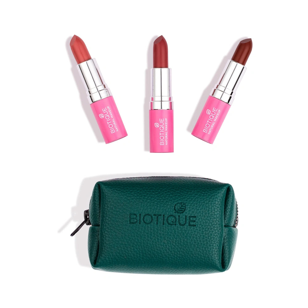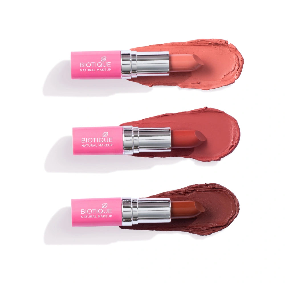 The Biotique Lipstick Nude Edition with Lipstick Case (Pack of 3) offers a curated selection of wearable nude shades that enhance your natural lip color with a smooth, satin finish. Each lipstick is formulated to provide long-lasting hydration and comfortable wear, while the included lipstick case ensures safe and stylish storage. This pack is ideal for creating versatile looks, from everyday elegance to professional sophistication, making it a must-have in any makeup collection.
