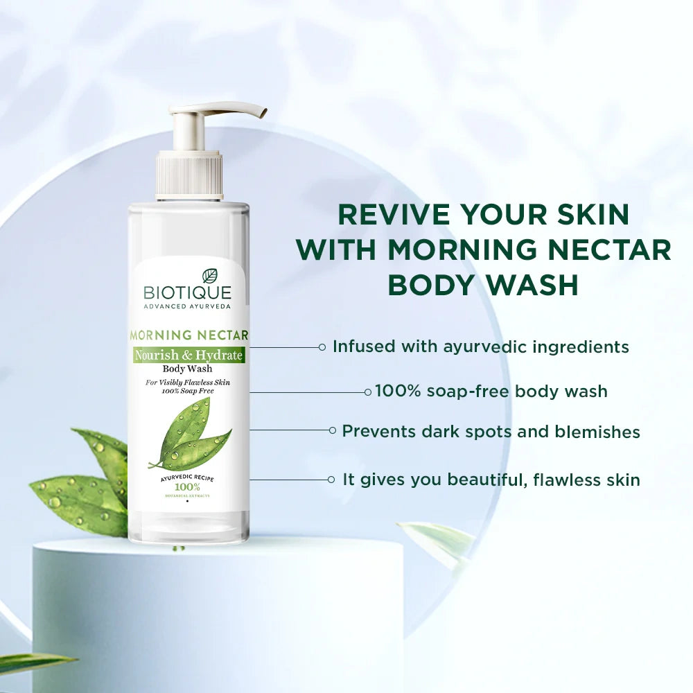 Experience revitalized skin with BIOTIQUE Morning Nectar Nourish & Hydrate Body Wash. This 200ml nourishing formula gently cleanses while deeply hydrating, leaving your skin soft and refreshed. Infused with natural ingredients, it promotes moisture retention and protects your skin’s natural barrier, making it ideal for daily use. Elevate your skincare routine with a body wash that combines effective cleansing with lasting hydration.