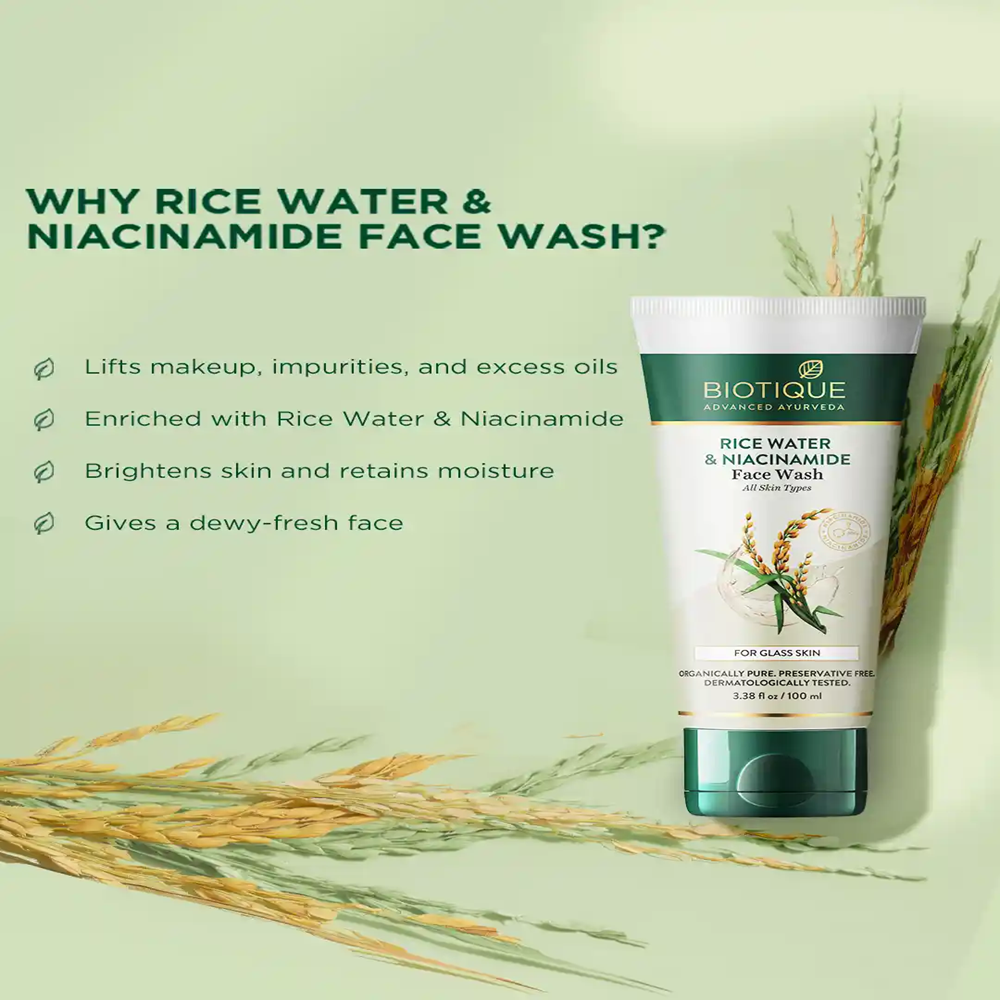 Biotique Rice Water & Niacinamide Gel Face Wash combines the brightening properties of rice water with the skin tone-evening benefits of niacinamide. This gentle gel formula effectively cleanses impurities and excess oil while promoting a clearer, radiant complexion. Ideal for daily use, it helps reduce dullness and supports skin hydration without stripping natural moisture, leaving your skin refreshed and balanced. Perfect for those seeking expert-level care to enhance skin clarity and texture.