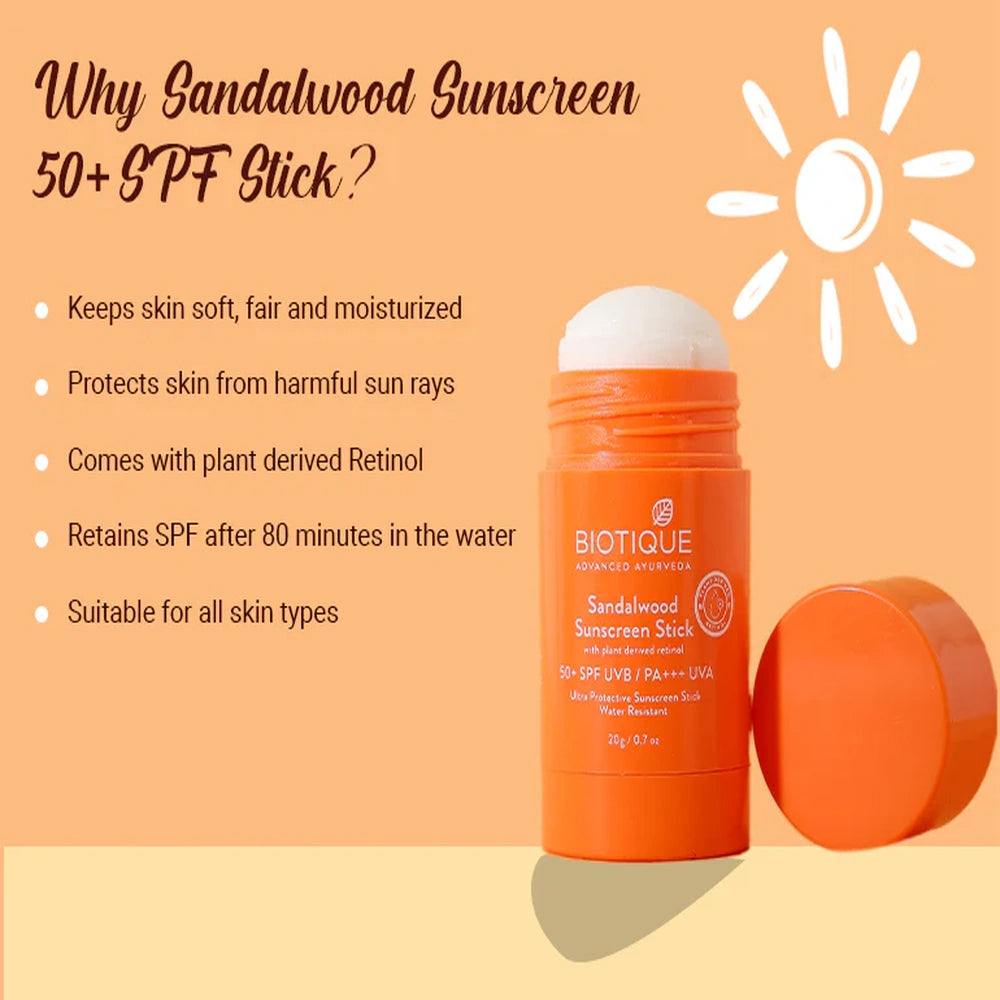 Biotique Sandalwood Sunscreen Stick SPF50+ offers high protection against harmful UVA and UVB rays in a convenient, mess-free stick form. Infused with natural sandalwood extracts, it soothes and nourishes the skin while providing a matte, non-greasy finish. Ideal for daily outdoor use, this compact sunscreen ensures effective defense with easy application, making it perfect for on-the-go sun care.