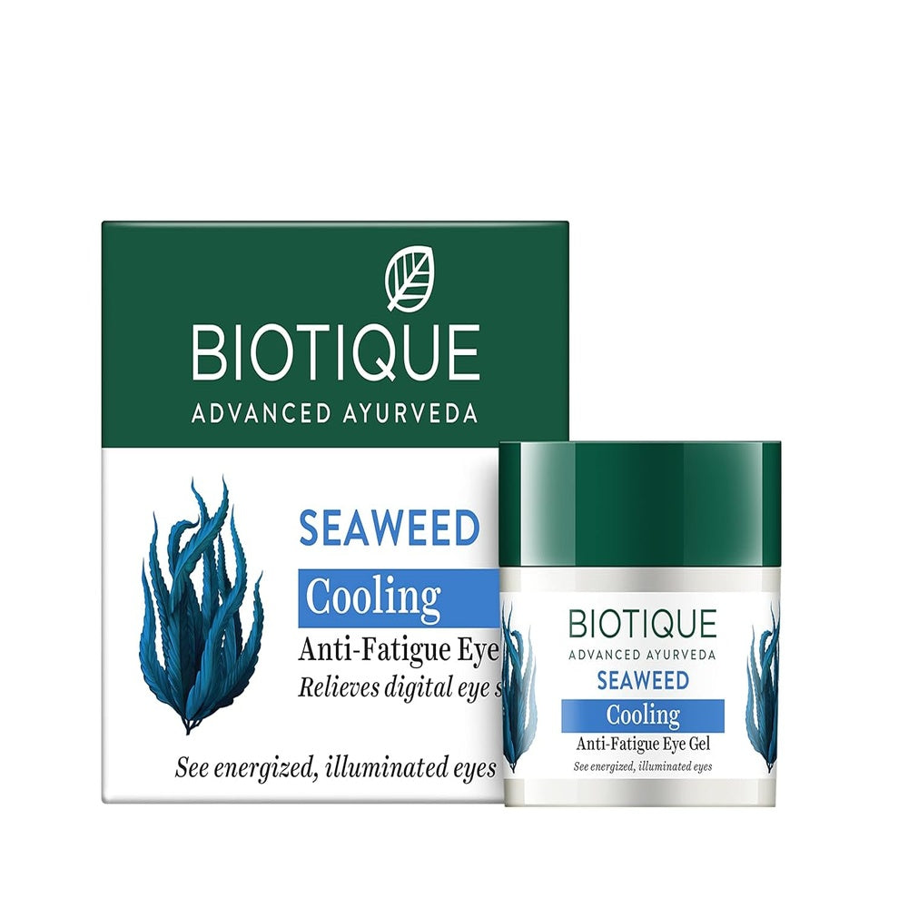 Biotique Seaweed Cooling Anti Fatigue Eye Gel is formulated to soothe and refresh tired eyes, reducing puffiness and dark circles. Enriched with natural seaweed extract, it cools the delicate under-eye area while providing hydration and strengthening skin elasticity. This lightweight gel absorbs quickly without leaving a greasy residue, making it ideal for daily use to combat signs of fatigue and maintain a youthful, revitalized appearance around the eyes.