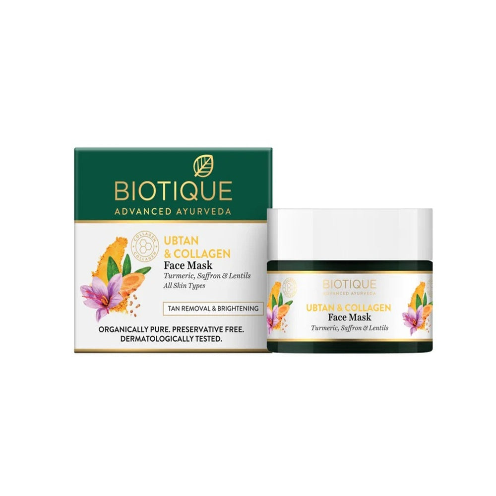 Biotique Ubtan & Collagen Face Mask (50g) combines traditional Ubtan herbs with collagen to rejuvenate and brighten your skin. This mask helps in deep cleansing while promoting skin elasticity and reducing signs of aging. Ideal for restoring a natural glow, it supports a smoother, firmer complexion through natural ingredients that nourish and hydrate effectively. Perfect for enhancing your skincare routine with an expert touch of Ayurvedic care.