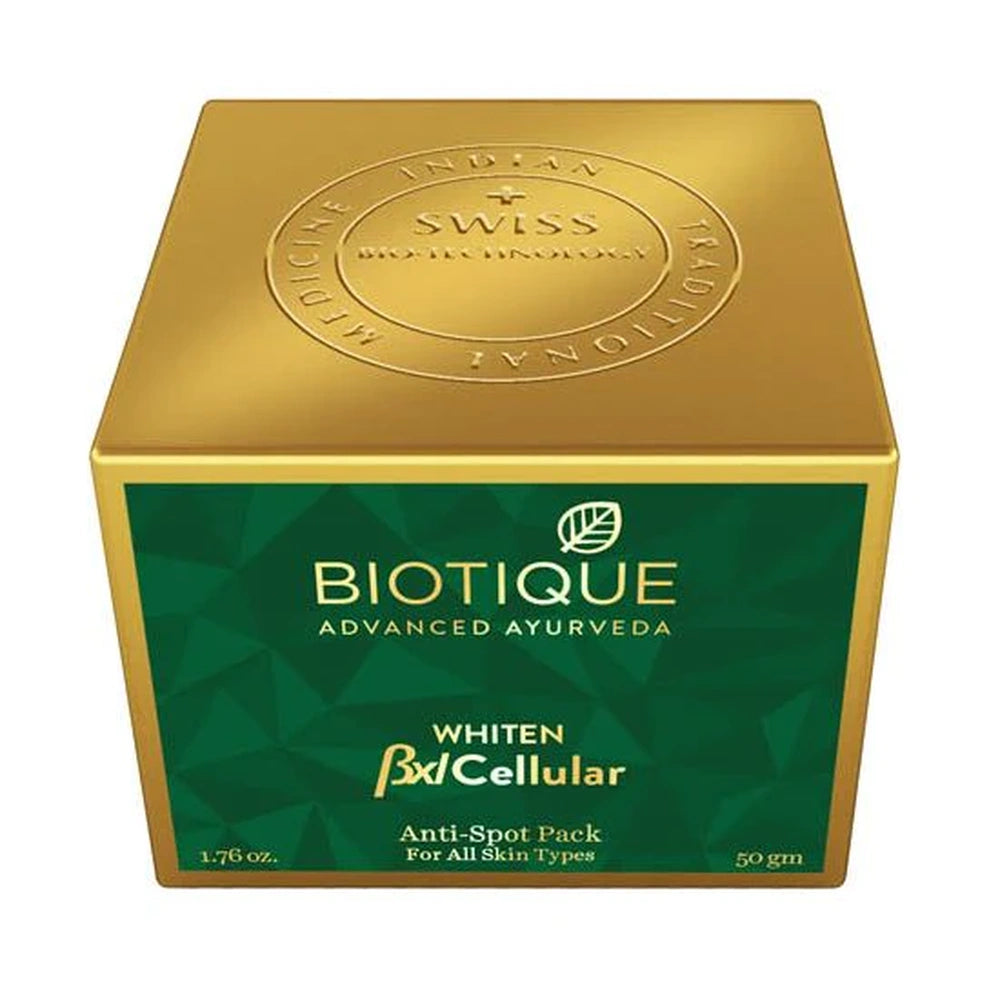 Biotique Whiten BXL Cellular Anti Spot Pack (50g) is designed to reduce dark spots and even out skin tone through advanced cellular repair. This formula targets pigmentation and promotes skin clarity by supporting natural regeneration processes. Suitable for daily use, it helps enhance radiance and delivers a visibly brighter complexion with consistent application, combining natural ingredients known for their skin-renewing properties.