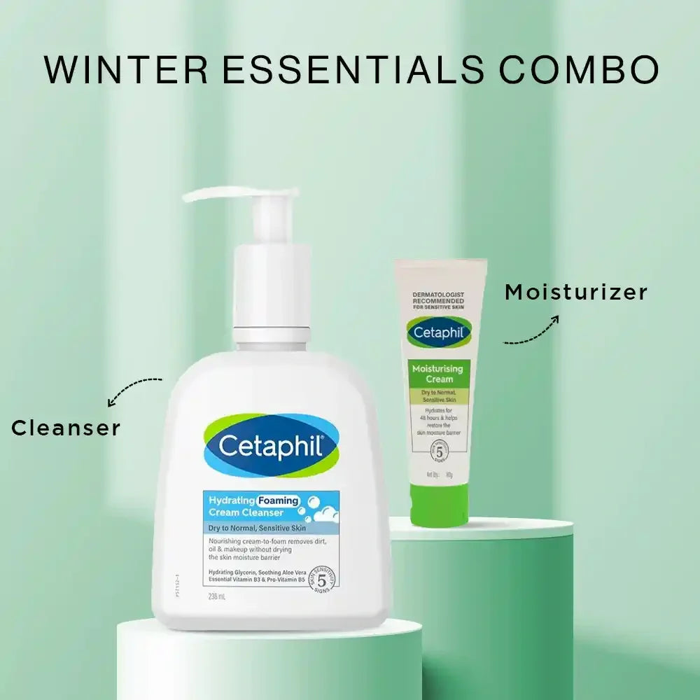Cetaphil Hydrating Essentials Combo offers a gentle yet effective skincare routine, featuring a Hydrating Foaming Cleanser (236 ml) that removes dirt and impurities without stripping moisture, and a Moisturising Cream (80 gm) designed to restore and maintain the skin’s natural hydration barrier. This duo is ideal for sensitive and dry skin, providing balanced cleansing and long-lasting moisturization to leave skin feeling soft, smooth, and healthy. Suitable for daily use, it supports optimal skin hydration while minimizing irritation.