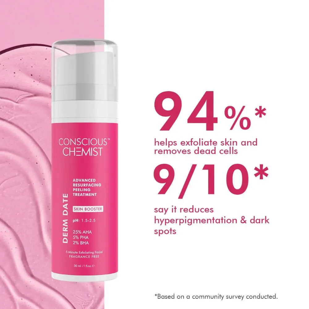 Conscious Chemist Advanced Resurfacing Peeling Solution combines 25% AHA, 2% BHA, and 5% PHA to gently exfoliate and promote skin renewal. This powerful serum helps reduce signs of aging, smooth texture, and improve overall radiance, suitable for both men and women. Its multi-acid formula targets uneven skin tone, clogged pores, and dullness for a refined, rejuvenated complexion. The 30 ml bottle offers an effective step in your skincare routine to support healthier, visibly refreshed skin.