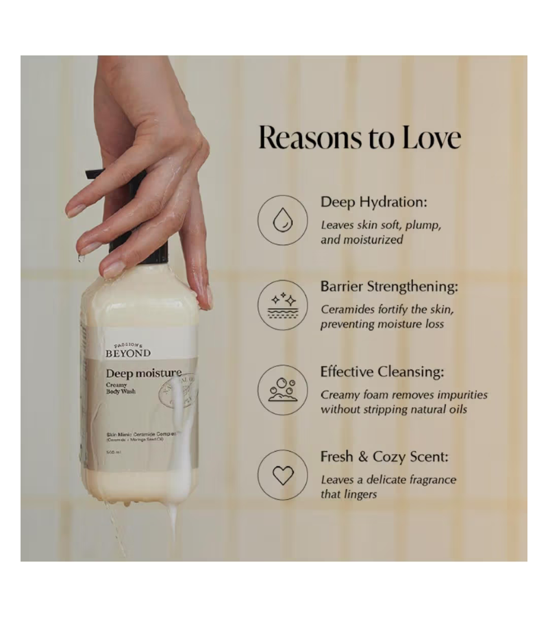 Belif Beyond Deep Moisture Korean Creamy Body Wash transforms your daily shower into a nourishing ritual. This 500ml vegan formula combines ceramides with Korean skincare expertise to deeply hydrate and restore dry, compromised skin. The rich, creamy texture gently cleanses without stripping natural oils, leaving your body feeling soft, supple, and intensely moisturized. Ideal for those seeking professional-grade hydration in a luxurious shower experience.