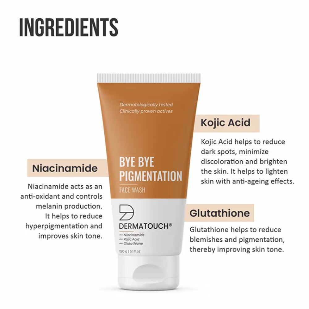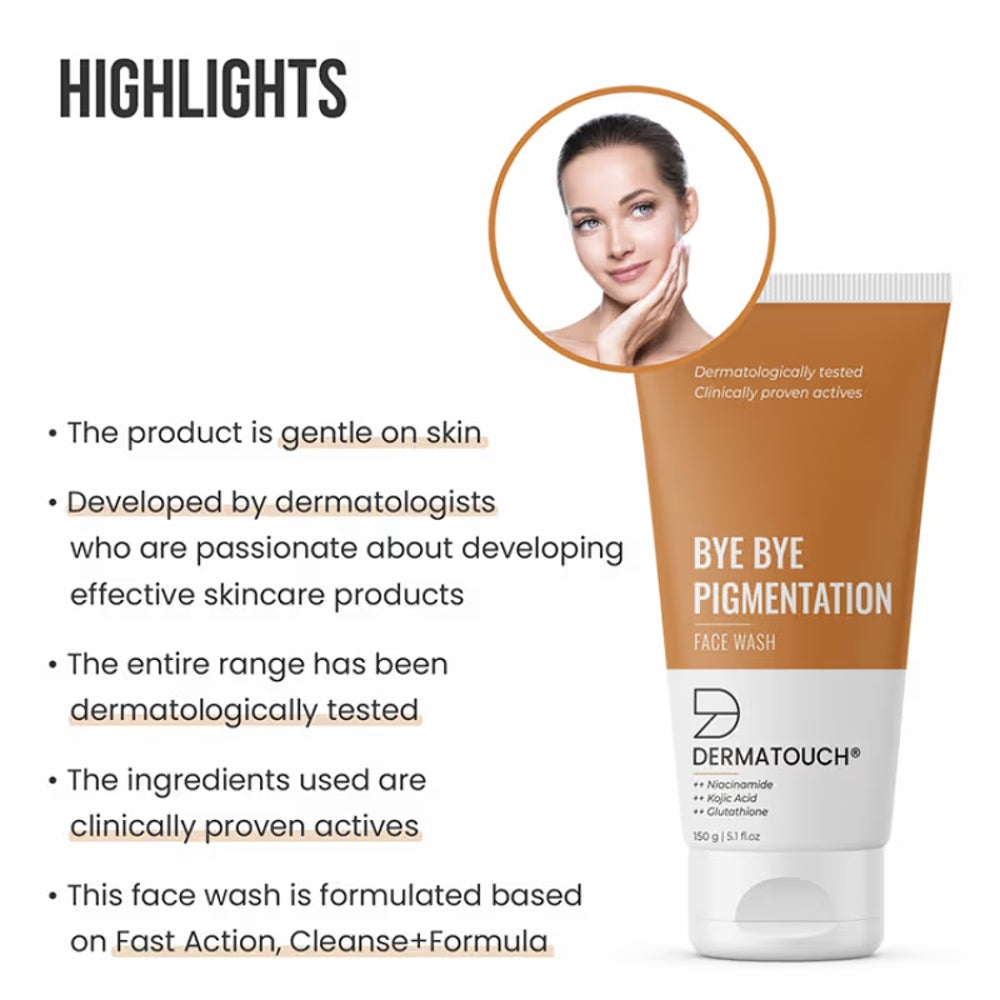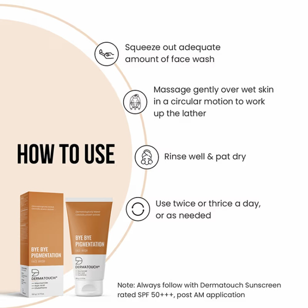 Derma Touch Bye Bye Pigmentation Face Wash is expertly formulated to gently cleanse the skin while targeting pigmentation. Its unique blend helps reduce dark spots and uneven tone, promoting a clearer, more radiant complexion. Suitable for daily use, this face wash supports a healthier skin appearance by removing impurities without stripping essential moisture. Ideal for those looking to enhance skin clarity and maintain a balanced, even skin tone.