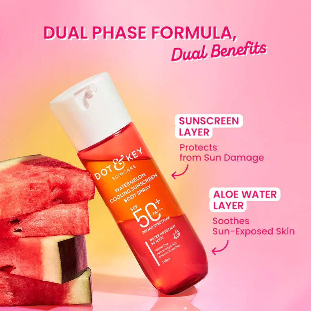 Dot & Key Watermelon Body Sunscreen Spray SPF 50+ PA+++ offers high-level broad-spectrum protection against UVA and UVB rays. Its lightweight, non-greasy formula enriched with watermelon extract helps nourish and hydrate your skin while protecting it from sun damage. Conveniently packaged in a 110ml spray bottle, it provides easy, even application for on-the-go sun care. Ideal for daily use, this sunscreen keeps your skin safe without leaving a sticky residue.