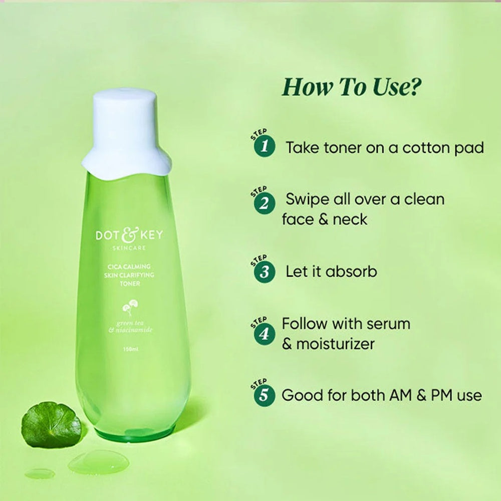 Dot & Key Cica + Niacinamide Toner with Green Tea combines potent soothing and brightening ingredients to enhance skin clarity and calm inflammation. Infused with Centella Asiatica (Cica), niacinamide, and antioxidant-rich green tea, this toner helps reduce redness, strengthen the skin barrier, and regulate oil production. Its lightweight formula improves texture and primes your skin for optimal absorption of subsequent treatments, making it essential for a balanced, resilient complexion. Suitable for sensitive and combination skin types seeking a calm, radiant finish.