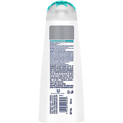 Harsh, humid weather taking a toll on your beautiful hair causing damage? Guard your hair against the harsh weather with the Dove Dryness Care Shampoo. It is crafted from a perfect blend of ingredients, the shampoo helps to restore the natural balance of hair making it soft and smooth. To help prevent daily damage, Dove Nutritive Solutions Dryness Care Shampoo gently nourishes normal and dry locks for healthy-looking hair. The shampoo cleans your dry locks gently and gives it a shiny and glossy look. The specially designed formula of this shampoo is perfect for days when your dry scalp needs help. Dove Dryness Care Shampoo is just what you need for smooth and bouncy hair! This moisturizing and nourishing shampoo helps to protect hair from damage, for silky, soft. Uniquely formulated with Pro-Moisture Complex, this Dove shampoo nourishes hair from within. Dove Dryness Care Shampoo continues to nourish hair after each application, for strong hair that's manageable. The smooth, soft and more resilient to daily damage from grooming and brushing, beautiful hair is just one wash away with this nourishing shampoo. Strength against hair breakage, based on lab test with Dove Dryness care system vs. non-conditioning shampoo.
