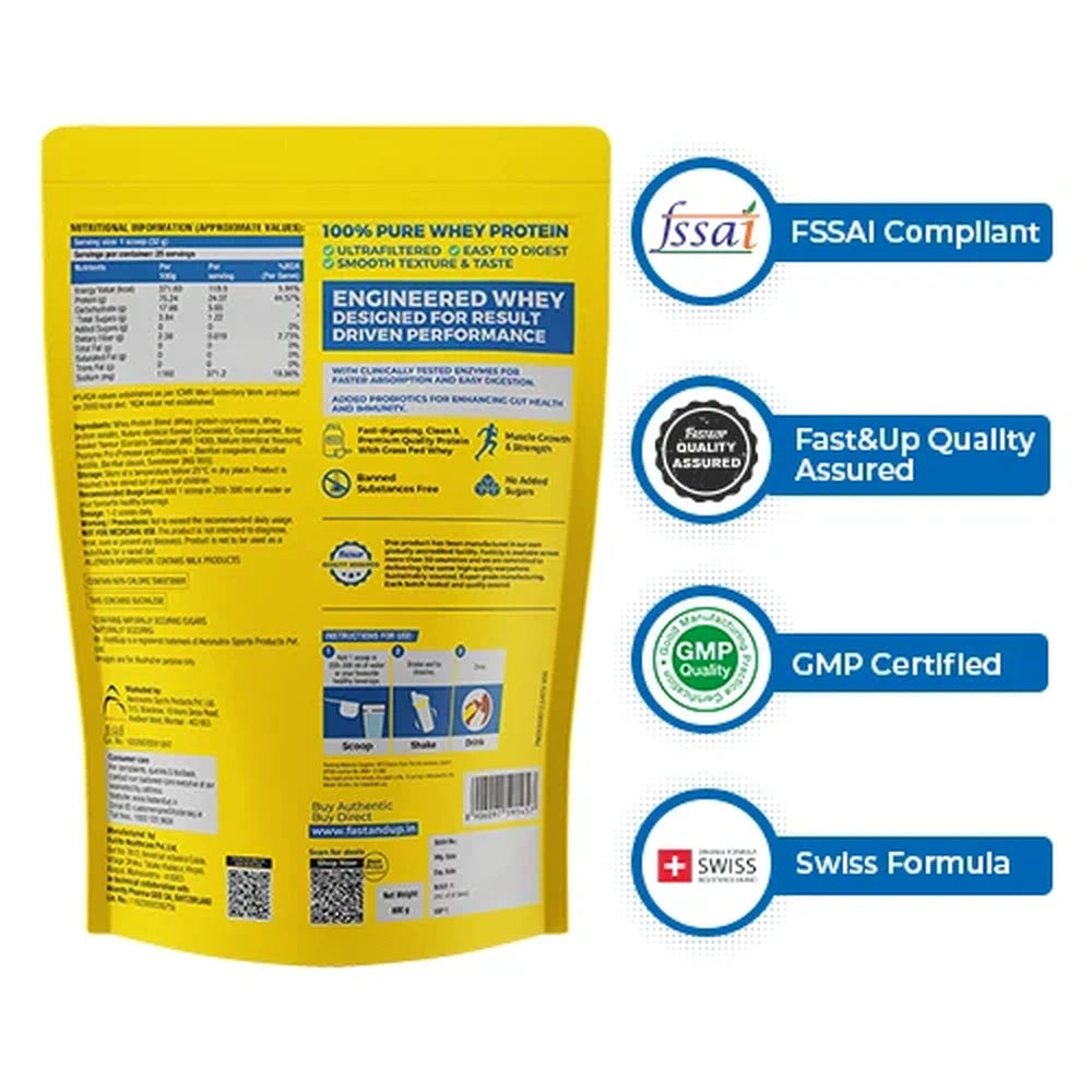 Fast&Up Chocolate Whey Essentials blends premium whey protein with vital nutrients to promote muscle recovery and development. Its delicious chocolate taste offers a pleasant way to supplement protein intake after exercise or throughout the day. Designed to support muscle repair, improve endurance, and assist in achieving fitness objectives, it is perfect for athletes and fitness-focused individuals looking for reliable nutritional assistance.