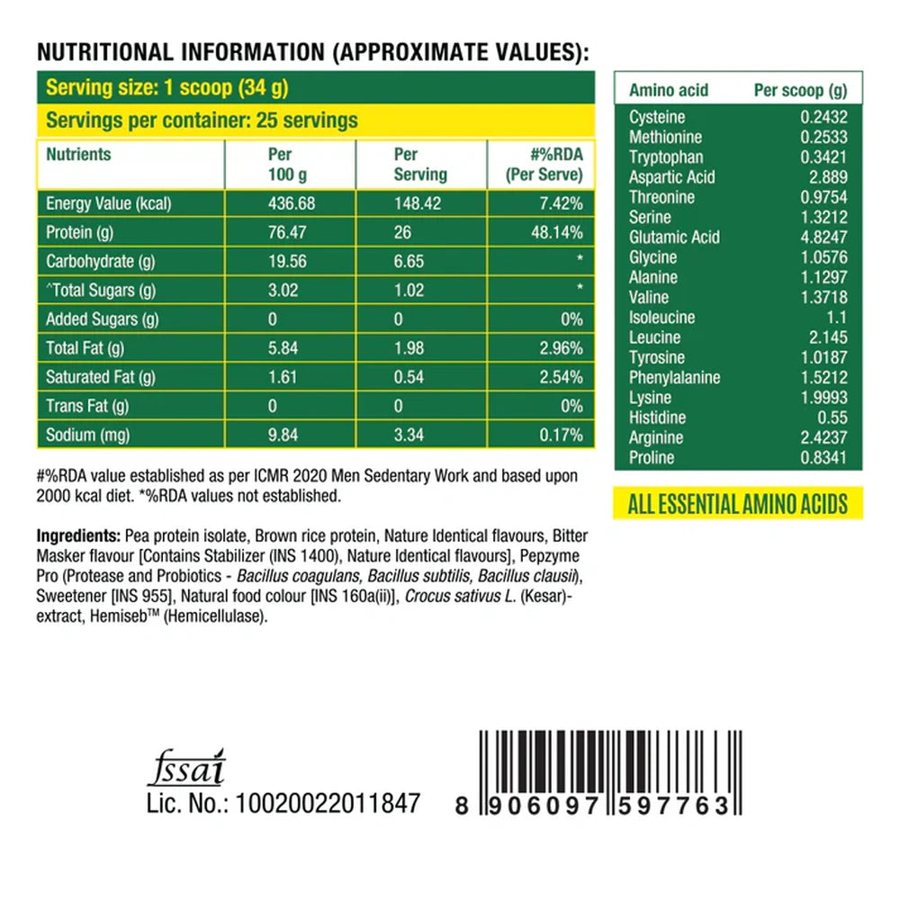 Fast&Up Kesar Kulfi Plant Protein offers 25 servings of a delicious, plant-based protein blend infused with the rich flavor of kesar kulfi. This protein supplement supports muscle recovery and growth while providing a natural source of plant nutrition. Ideal for those seeking a dairy-free option, it combines convenience with effective nutrition to enhance your fitness routine and overall wellness.