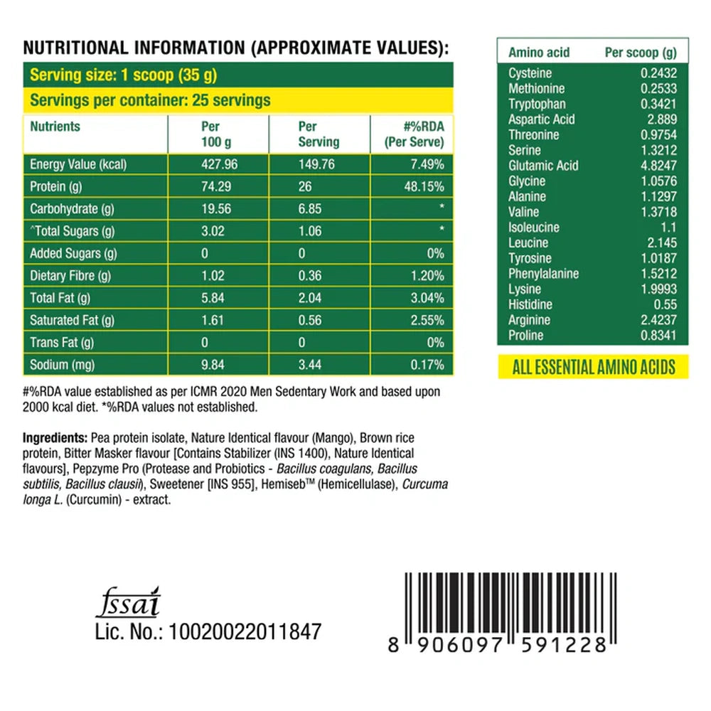 Fast&Up Alphonso Mango Plant Protein combines high-quality plant-based protein with the natural, refreshing taste of Alphonso mango. This formulation supports muscle repair and recovery while providing essential nutrients for overall health. Ideal for those seeking a dairy-free protein supplement, it offers a delicious and convenient way to meet your protein needs and maintain energy throughout the day.