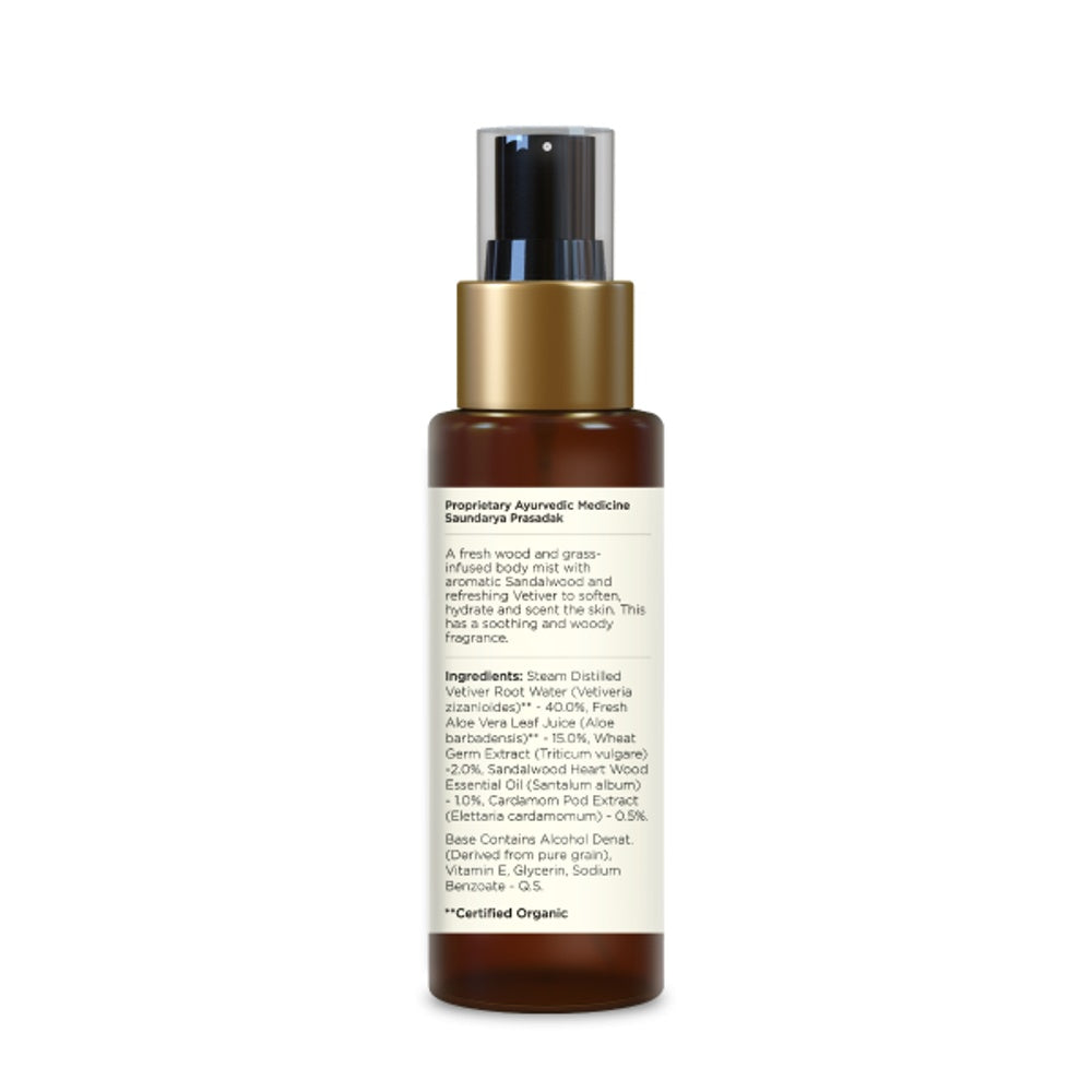 Forest Essentials Body Mist Sandalwood & Vetiver offers a refreshing blend of classic sandalwood and soothing vetiver, known for their calming and grounding properties. This lightweight mist hydrates the skin while leaving a subtle, long-lasting fragrance that enhances your natural aura. Ideal for everyday use, it refreshes and revitalizes, providing a serene sensory experience rooted in traditional Indian aromatherapy.