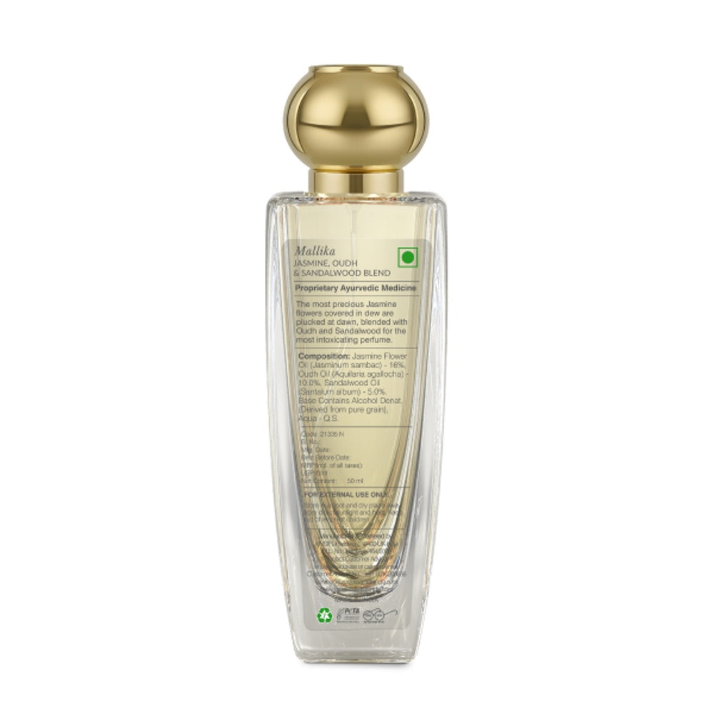 Forest Essentials Mallika Jasmine, Oudh & Sandalwood Intense Perfume blends rich, natural ingredients to create a deeply aromatic experience. The delicate floral notes of jasmine mingle with the warm, resinous oudh and creamy sandalwood, offering a luxurious and long-lasting fragrance. Perfect for those seeking a sophisticated scent that balances elegance with intensity, this perfume captures the essence of traditional Indian perfumery in a modern form.