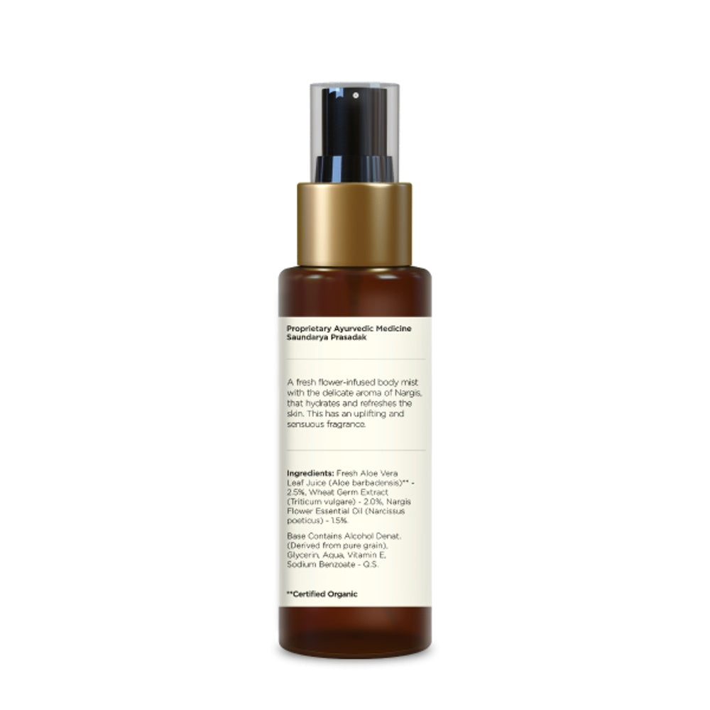 Experience the refreshing and delicate fragrance of Forest Essentials Nargis Body Mist, crafted with natural ingredients to subtly hydrate and enliven your skin. Enriched with the essence of Nargis (Narcissus), this mist offers a soothing floral aroma that invigorates your senses while providing a light, non-sticky moisture boost. Ideal for daily use, it leaves your skin feeling soft, revitalized, and delicately scented throughout the day. Perfect for those seeking an elegant, natural fragrance with skincare benefits.