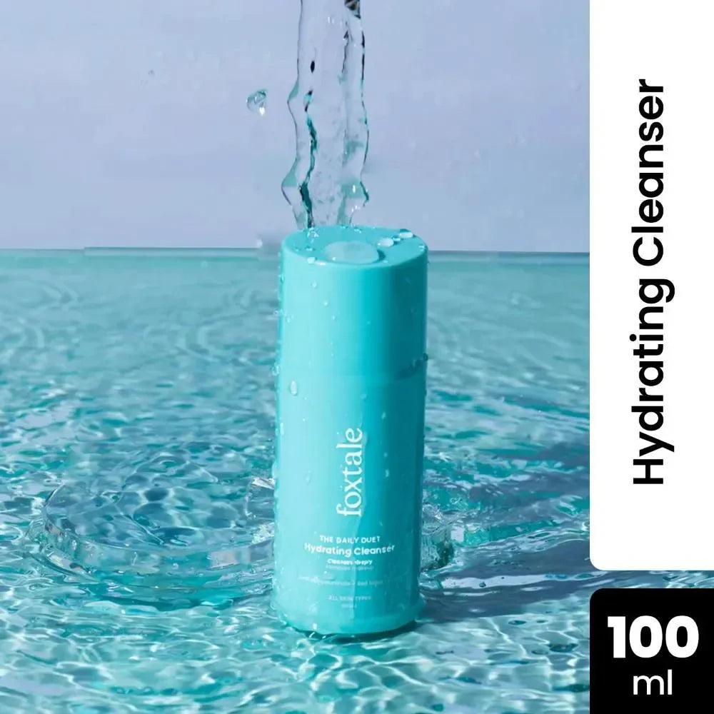 The Foxtale Combo pairs a 100ml Hydrating Cleanser with a 50ml Ceramide Moisturizer to support balanced, healthy skin. The cleanser gently removes impurities while maintaining moisture, preparing skin for optimal hydration. The ceramide-rich moisturizer helps restore the skin barrier, locking in moisture and enhancing resilience. Together, they provide a comprehensive regimen that cleanses effectively and deeply nourishes, ideal for maintaining skin's natural hydration and strength.