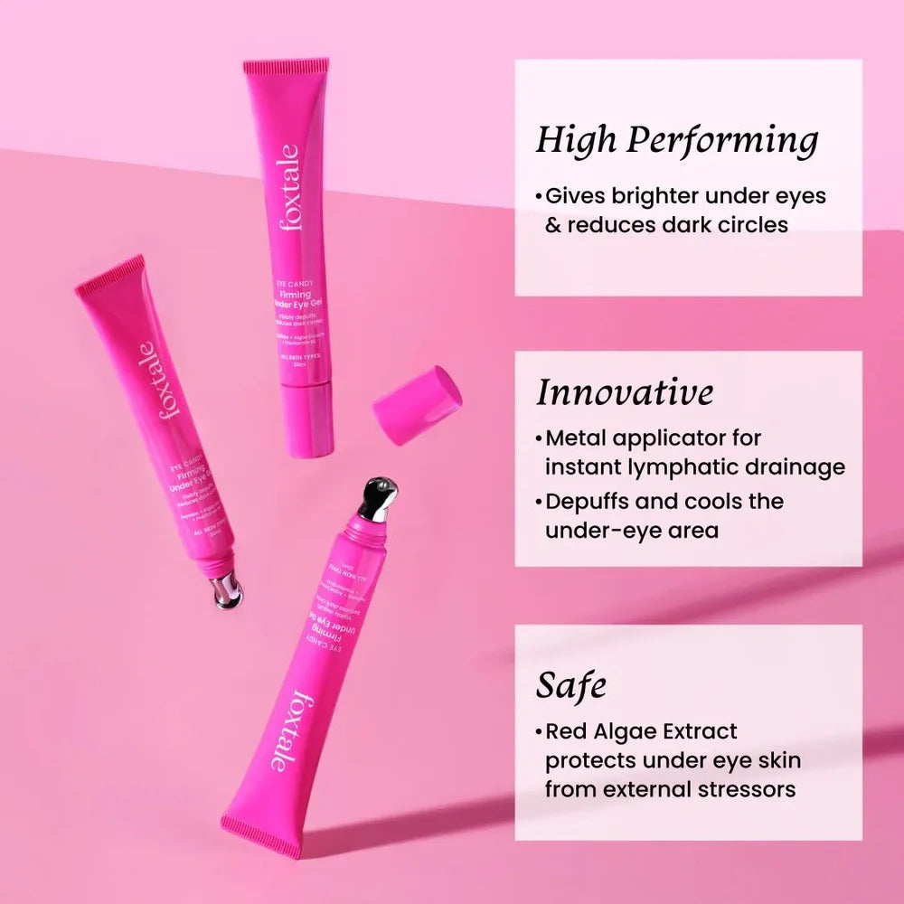 Foxtale Eye Candy Firming Eye Gel (20ml) is formulated to visibly tighten and refresh the delicate skin around the eyes. This lightweight gel helps reduce the appearance of fine lines and puffiness, promoting a smoother, firmer eye contour. Designed for daily use, it provides hydration without heaviness, making it ideal for all skin types seeking a revitalized, youthful look.