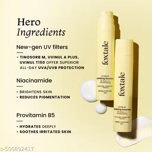 Foxtale Niacinamide Matte Sunscreen SPF 70+ PA++++ offers high-level protection with a non-greasy, anti-tan formula suitable for both men and women. Infused with niacinamide, it helps brighten skin while delivering a matte finish without any white cast. This pack of two 50ml tubes ensures you stay protected and shine-free throughout the day, making it ideal for daily wear in various environments.