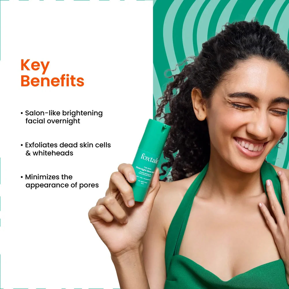 Foxtale The Diva Over Night Glow Mask is a carefully formulated treatment designed to rejuvenate all skin types overnight. Enriched with gentle exfoliants AHA and PHA, it promotes skin renewal by removing dead cells and refining texture without irritation. Provitamin B5 deeply hydrates and soothes the skin, enhancing its natural barrier for a radiant, healthy glow by morning. Its lightweight, non-greasy formula absorbs quickly, making it ideal for nightly use to support smoother, brighter, and more even-toned skin.