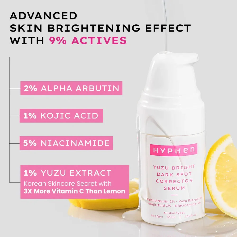 This advanced face serum combines 2% Alpha Arbutin and 1% Kojic Acid to effectively target dark spots and pigmentation. Enriched with Yuzu extracts and Niacinamide, it helps brighten the skin complexion while promoting a more even tone. Lightweight and fast-absorbing, this serum is designed for expert use in daily skincare routines to support clearer, radiant skin.