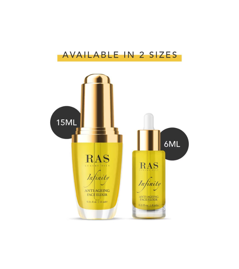 Infinity Anti-Ageing Face Elixir is a sophisticated lightweight serum formulated with potent actives to address visible signs of aging. Enriched with Vitamin C for brightening and antioxidant protection, Vitamin A to support skin renewal, and Vitamin B5 for hydration and barrier strengthening, this elixir works synergistically to refine texture and restore luminosity. The weightless formula absorbs seamlessly into skin, making it ideal for layering within your skincare routine. Experience refined, youthful-looking skin with consistent use.