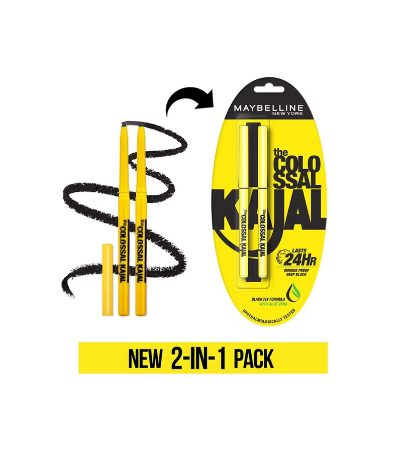 GET DIRECTIONMaybelline New York's Intense Colour Colossal Kajal delivers bold, long-lasting definition with a sophisticated matte finish. This dual pack features two 0.35g pencils in deep black, ideal for creating dramatic eye looks that command attention. The precision tip allows for controlled application, whether you're lining the waterline or crafting intricate designs. Formulated for durability, this kajal resists smudging throughout the day, maintaining its intense pigmentation without fading. Perfect for those seeking professional-grade eye definition with effortless blending capabilities.