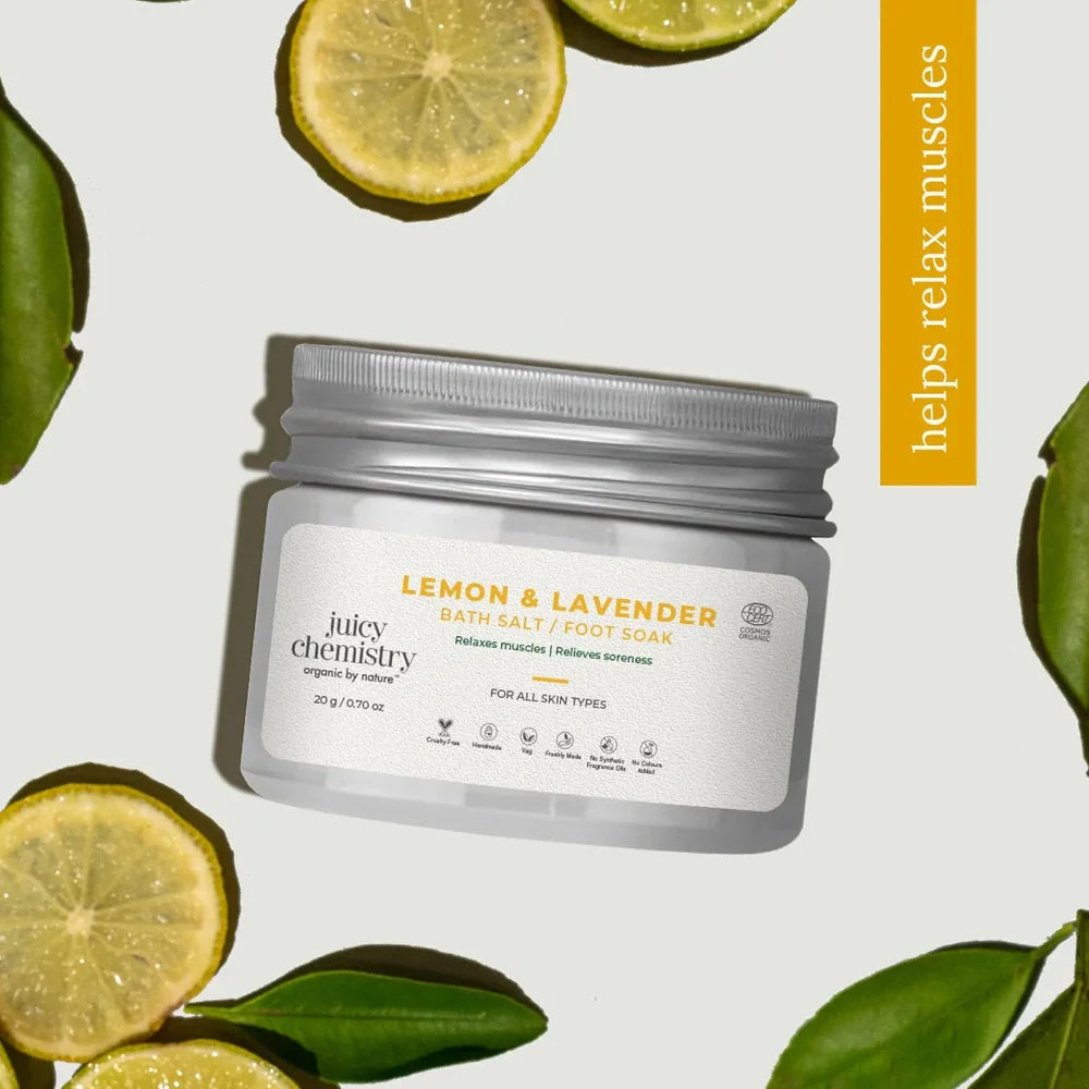 Experience the calming blend of lemon and lavender with this 100g bath salt and foot soak. Expertly formulated to soothe tired muscles and refresh your skin, it promotes relaxation while gently cleansing. Ideal for a luxurious soak that eases tension and revitalizes your senses, enhancing your self-care routine with natural ingredients known for their therapeutic properties.