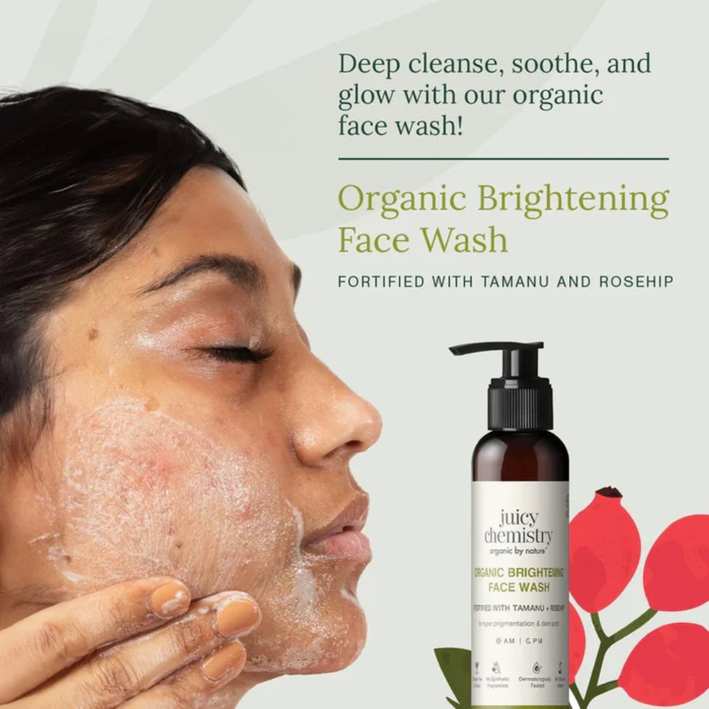 Juicy Chemistry Tamanu Kakadu Plum and Frankincense Face Wash combines potent natural ingredients to gently cleanse and rejuvenate the skin. Tamanu oil supports skin healing and reduces inflammation, while Kakadu plum, rich in Vitamin C, brightens and protects against environmental stressors. Frankincense adds soothing properties, promoting a calm and balanced complexion. This face wash helps maintain clear, radiant skin without stripping natural moisture, making it ideal for daily use and sensitive skin types.