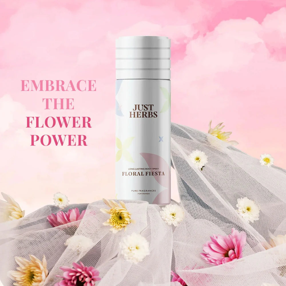 Just Herbs Long Lasting Floral Fiesta Deodorant Body Spray is expertly crafted for women seeking gentle yet effective odor protection. This 150ml spray blends natural floral extracts to provide a refreshing, long-lasting fragrance that neutralizes odor without irritation. Free from synthetic chemicals, it supports skin health while delivering a vibrant, uplifting scent, perfect for all-day confidence and comfort. Ideal for daily use, it offers a subtle floral experience that complements your natural essence.