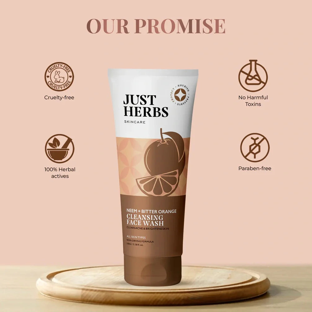 Just Herbs Cleansing Face Wash Neem and Bitter Orange combines the purifying qualities of neem with the refreshing essence of bitter orange to deeply cleanse and clarify your skin. This formulation gently removes dirt, excess oil, and impurities while maintaining the skin’s natural balance. Ideal for oily and acne-prone skin, it helps reduce blemishes and promotes a clearer, healthier complexion with regular use.