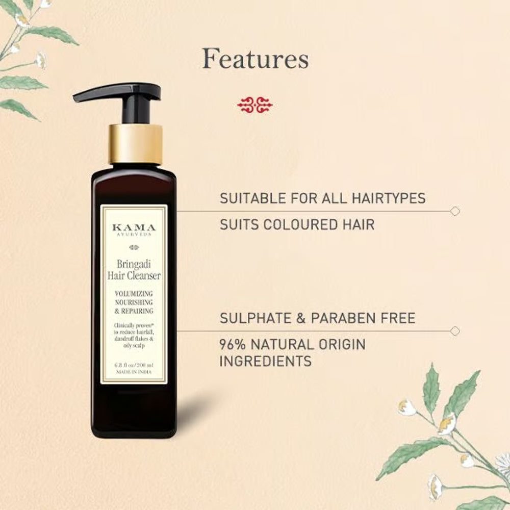 Kama Ayurveda Bringadi Hair Cleanser Nourishing Shampoo is a meticulously crafted formula designed to strengthen and revitalize hair naturally. Infused with traditional Ayurvedic ingredients like bringadi, bhringraj, and amla, it nourishes the scalp, promotes healthy hair growth, and helps prevent hair fall. Its gentle cleansing action removes impurities without stripping essential oils, leaving hair soft, shiny, and manageable. Ideal for those seeking a holistic approach to maintain scalp health and enhance hair vitality.