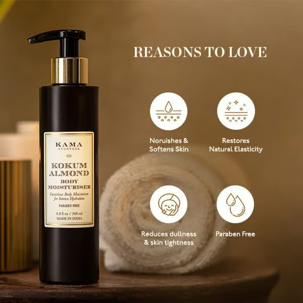 Kama Ayurveda Kokum Almond Body Moisturiser combines the nourishing properties of Kokum butter and sweet almond oil to deeply hydrate and restore skin’s natural glow. Its rich, non-greasy formula absorbs quickly, providing lasting moisture and improving skin elasticity. Ideal for dry and sensitive skin, this body moisturiser supports skin repair and promotes a smooth, supple texture without clogging pores. Perfect for daily use, it enhances skin hydration while enveloping you in a subtle, natural aroma.