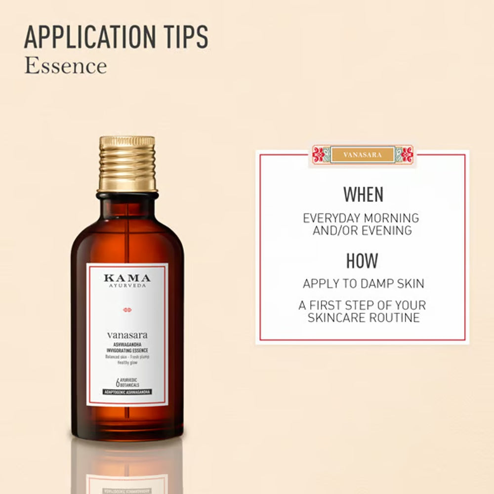 Kama Ayurveda Vanasara Ashwagandha Invigorating Essence (125ml) blends the potent benefits of Ashwagandha with traditional Ayurvedic formulations to revitalize and strengthen your hair. This essence helps reduce hair fall, promote scalp health, and enhance hair vitality by nourishing follicles deep within. Lightweight and non-greasy, it is ideal for daily use, supporting natural hair regeneration and resilience while maintaining scalp balance. A trusted ritual for those seeking expert-level hair care rooted in Ayurvedic wisdom.