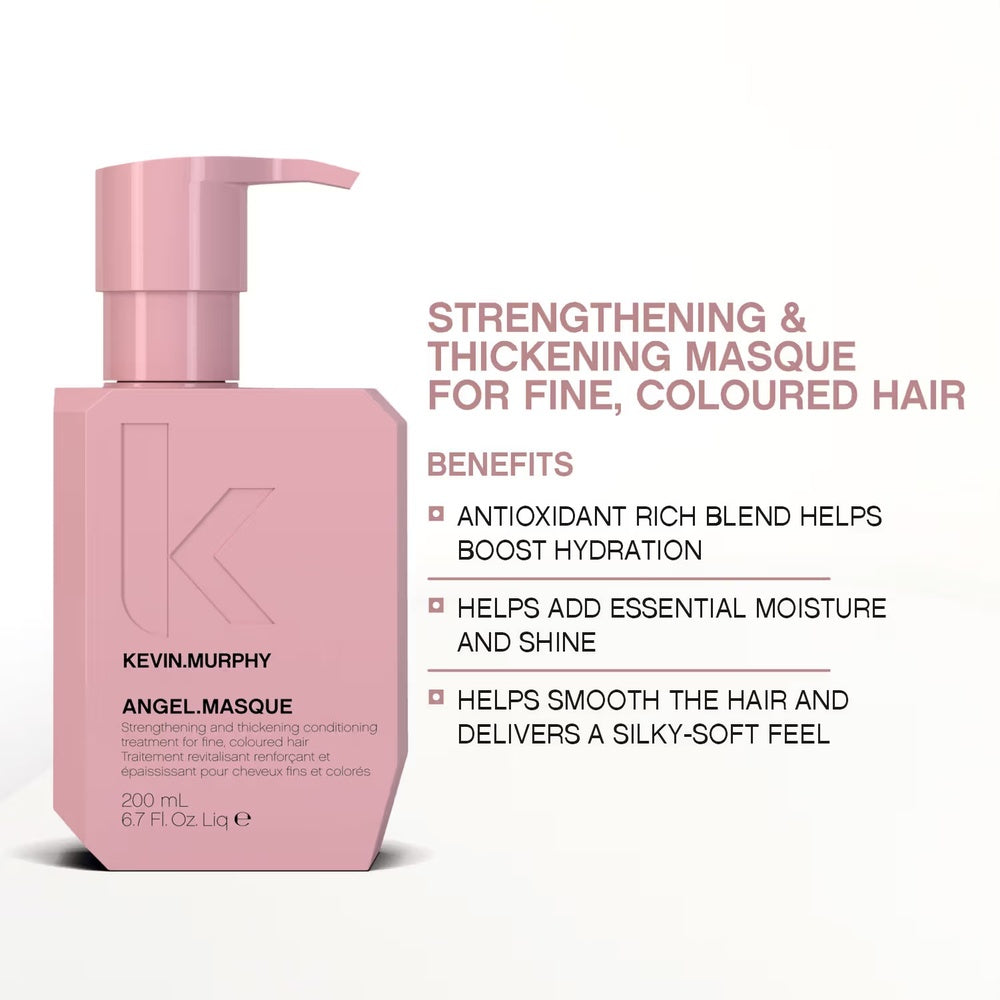 Kevin Murphy Angel Masque is a deeply nourishing treatment designed for fine, fragile hair. This lightweight masque restores moisture and strength without weighing hair down, improving elasticity and protecting against breakage. It smooths and conditions to enhance softness and shine, leaving hair resilient and more manageable.