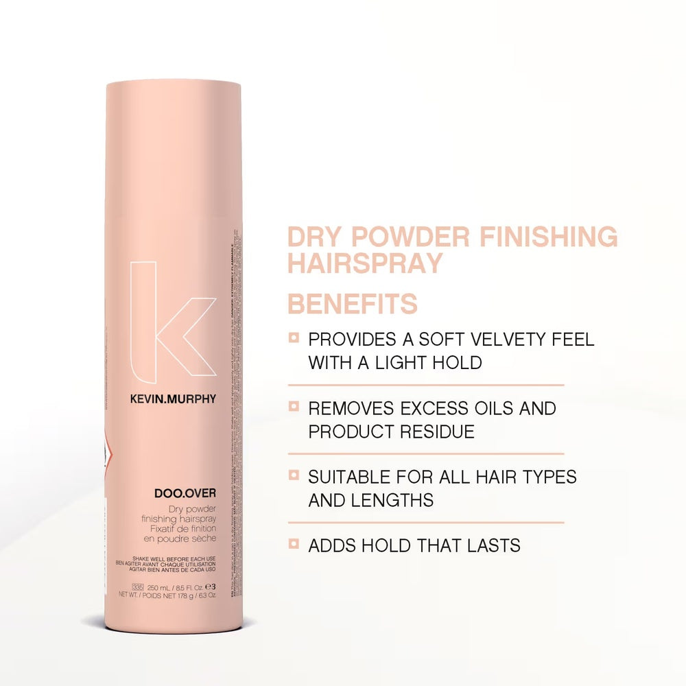 Kevin Murphy Doo Over (250ml) is a professional styling product designed to provide flexible hold with a natural, matte finish. Ideal for all hair types, it helps to add texture and volume without stiffness or residue. This lightweight formula offers long-lasting style control while maintaining hair’s natural movement, making it perfect for creating effortless, polished looks. With nourishing ingredients, it also supports hair health during styling.