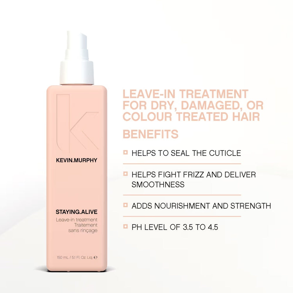Kevin Murphy Staying Alive (150ml) is a nourishing leave-in treatment that helps protect hair from daily environmental stressors and heat damage. Its lightweight formula conditions and strengthens strands, enhancing resilience and shine without weighing hair down. Ideal for all hair types, it supports healthier, more vibrant hair with lasting protection and softness.