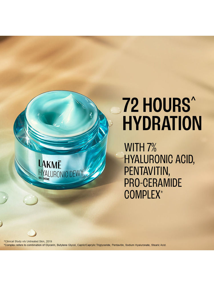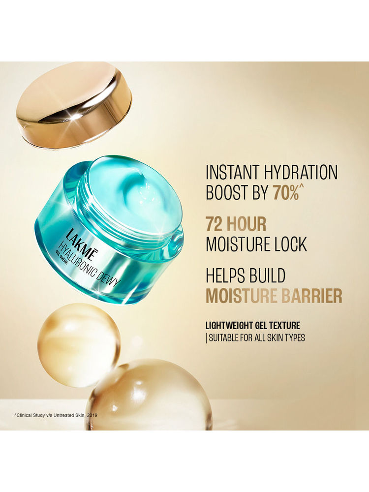 Discover the benefits of Lakme Hyaluronic Dewy Gel Creme With Hyaluronic Acid (50 g), designed to enhance your daily beauty routine with targeted performance and trusted Lakme quality.
