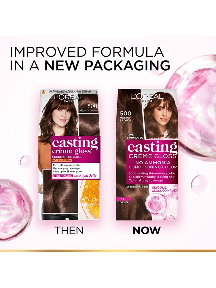 Enhance your hair’s natural shine with the L'Oréal Paris Casting Creme Gloss, now powered with Glycolic Gloss Complex. This ammonia-free, conditioning hair color gently covers greys and adds a luminous gloss to your hair. Its non-drip creme formula is easy to apply and provides a rich, natural color that lasts up to 28 washes. Infused with conditioning agents, it improves hair softness and radiance with every use. Whether you're coloring for the first time or refreshing your shade, this formula ensures your hair looks vibrant and healthy without damage.
