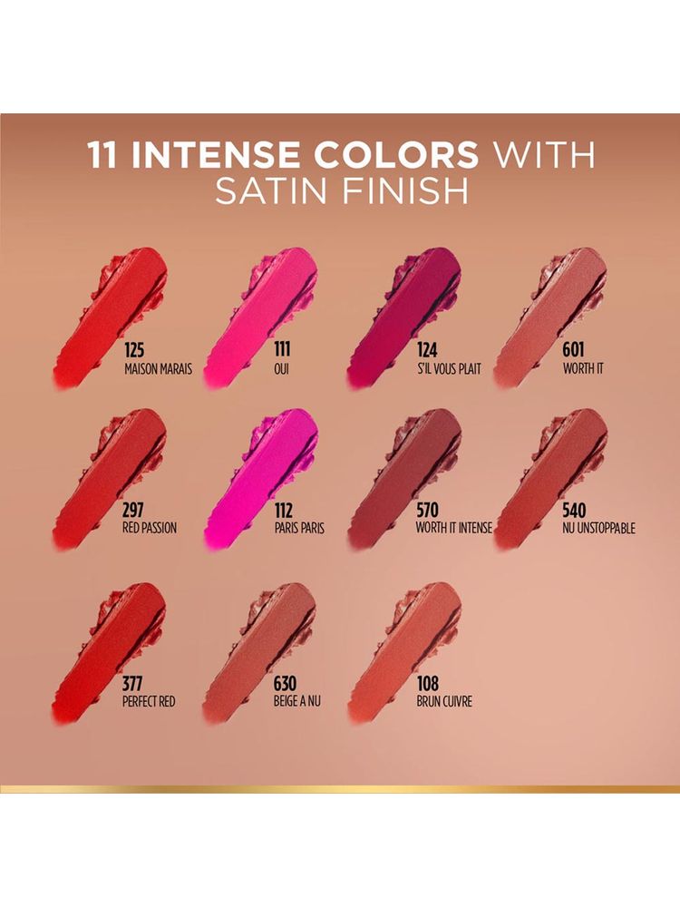 Indulge in luxurious color and creamy comfort with the L'Oreal Paris Color Riche Satin Lipstick. Formulated with nourishing ingredients like argan oil and vitamin E, this lipstick delivers intense pigment with a satin-soft finish. The creamy texture glides on effortlessly, providing long-lasting hydration and smooth application. Whether you're dressing up or down, this lipstick enhances your look with a rich, elegant hue and a sophisticated shine. Available in a wide range of shades for every skin tone and occasion.