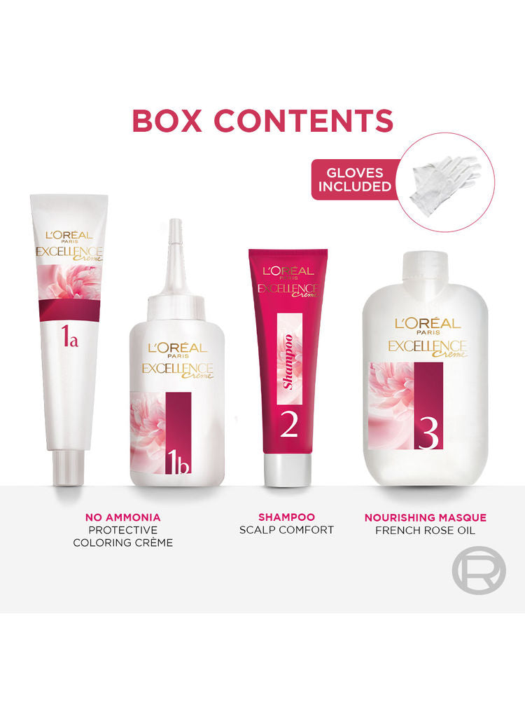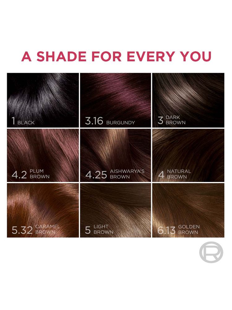 L'Oreal Paris Excellence Creme Hair Color in 4.2 Plum Brown offers triple care protection for deep, rich color and 100% grey coverage. The advanced formula with Pro-Keratin, Ceramide, and Collagen ensures nourished, shiny, and protected hair post-coloring.