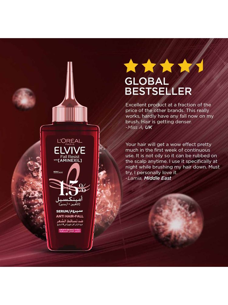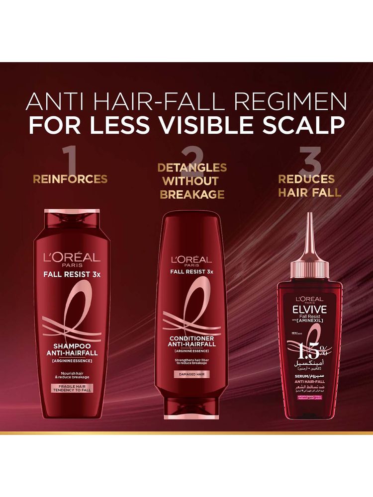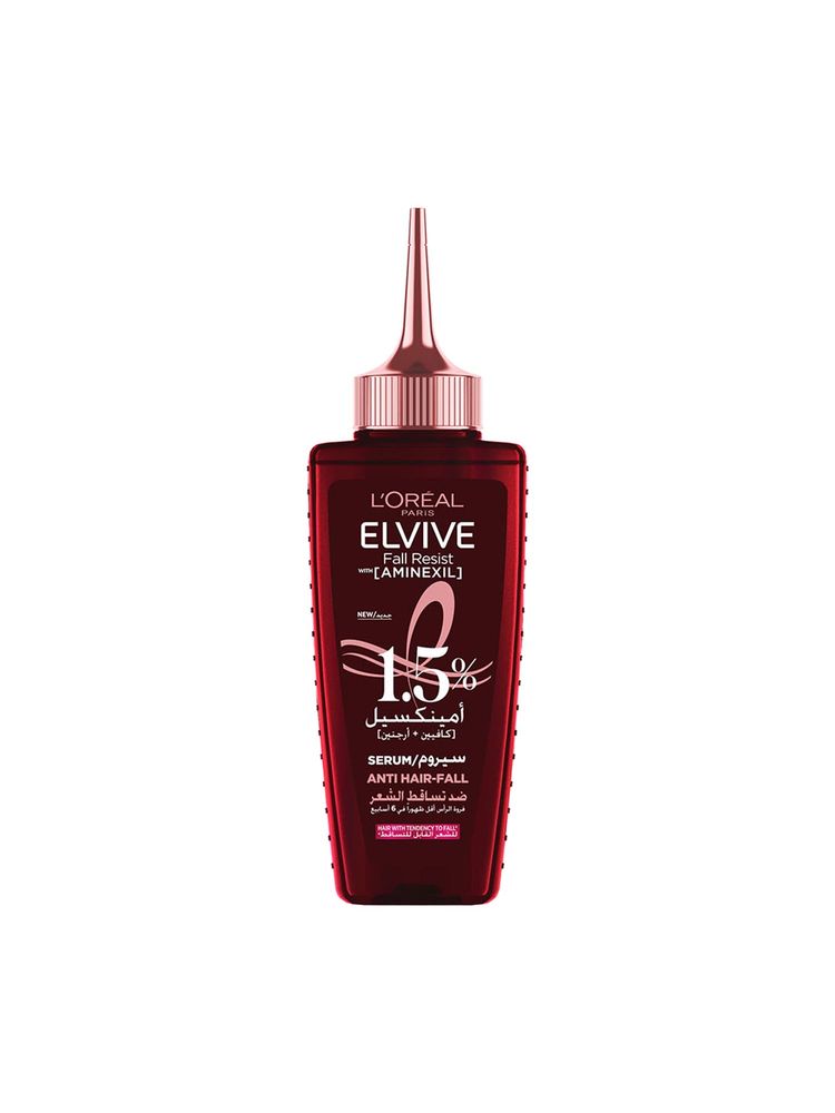 L'Oreal Paris Fall Resist Anti Hair Fall Serum is a clinically backed solution designed to strengthen fragile hair from the roots. Infused with 1.5% Aminexil, caffeine, and arginine, this serum works to reduce hair fall, improve scalp health, and reinforce each strand for long-lasting protection. It’s perfect for daily use, offering a lightweight texture and fast absorption without any greasy residue.