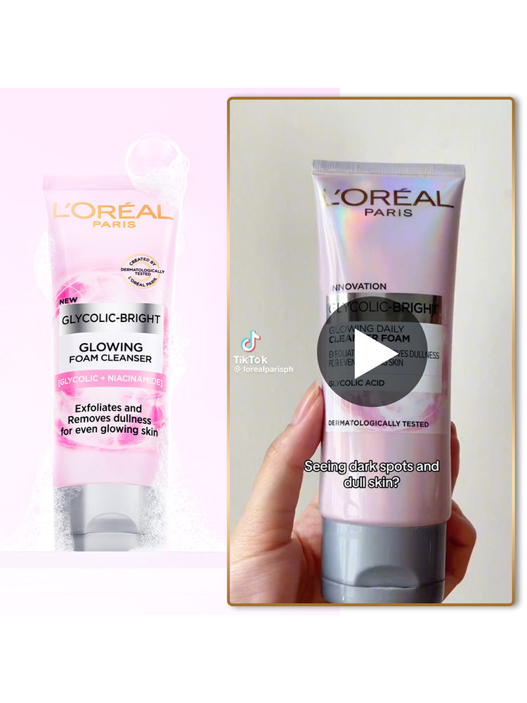 L'Oreal Paris Glycolic Bright Daily Foaming Cleanser deeply cleanses and gently exfoliates dull skin with the power of Glycolic Acid. It removes impurities and dead skin cells to reveal brighter, smoother, and glowing skin after every wash.