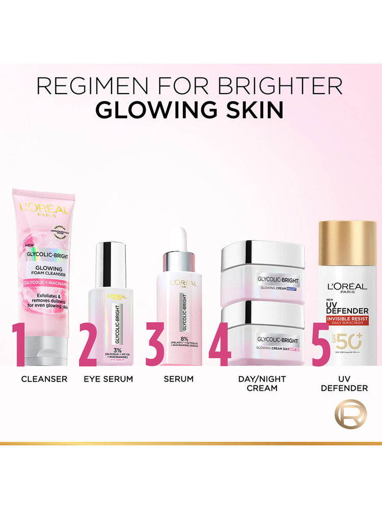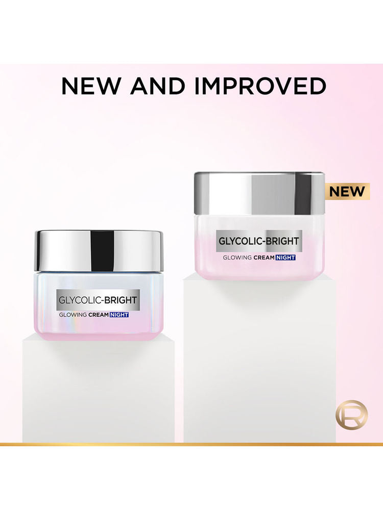L'Oreal Paris Glycolic Bright Night Cream is formulated with Glycolic Acid and Niacinamide to visibly reduce dark spots and brighten skin overnight. It helps improve skin texture and tone while you sleep, leaving your skin smooth and radiant.