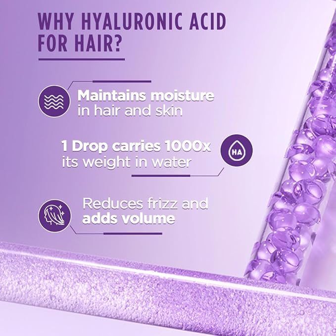 onditioner with hyaluronic acid ideal for dry and dull hair, Gives long lasting hydration to dehydrated hair without the weigh down